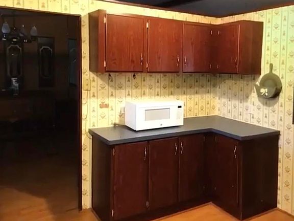 This beautiful doublewide mobile home sits on 2+/- acres in the Bacon Level Community in Roanoke, AL. It has 3 outbuildings and 2 with power and water. Beautiful flat land with cattle farm behind and horse farm across the road. Front porch is covered and ready for those rocking chairs. The large back deck is covered and ready for entertaining. Large living room with built in bookshelves and formal dining which also has built in bookshelves is very spacious. Beautiful etched glass windows separate the dining room from the Den/Family room where there is a beautiful gas log fireplace and even more built-in bookshelves which makes this room ready for reading or having your family gatherings. Kitchen has all the necessities and also a new stove. Laundry has its own room in kitchen. The large master bedroom with walk-in closet and master bath with soaking tub, shower and large vanity is the perfect get away. Other bedrooms are perfect size and share a full bath. "SOLD AS IS"