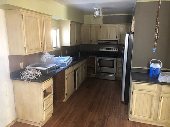 4 bedrooms, 1 full bath on ground level, 1 3/4 bath on second floor, 2 bedrooms upstairs, 2 bedrooms downstairs. Approximately 1402+/-sqft on oversized lot. Plenty of room to build whatever. Property sells "As Is Where Is", needs some TLC