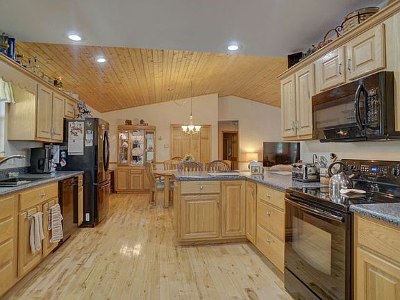 This a very spacious open floor plan with everything on the main floor. Seasonal views that could easily be year round with minimal trimming. The home is in excellent condition and it shows the the minute you walk in. Basement is finished with pool table that stays with home and a wet bar. Two car attached garage so you don't have to get wet on those rainy days. The master is on the main and has a large walk in tile shower and a huge closet. A must see!