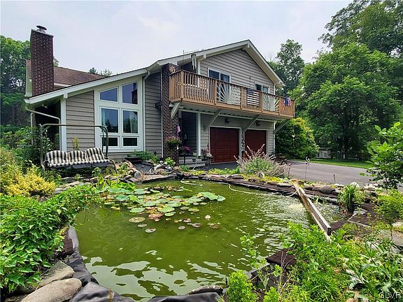 HIGHEST AND BEST WEDNESDAY 07/05 5PM. CONTINGENT ON SELLER FINDING SUITABLE HOUSING. Unique contemporary home nestled on 7.5 acre private lot. Home offers vaulted ceilings and open concept allowing views of the beautiful lot from every angle. Large rooms throughout. Sunny eat in kitchen. Enjoy morning coffee on the master bed balcony overlooking the gardens and Koi pond. Lower level family room is finished w another pellet stove. 5 zone oil burner. Outside you'll enjoy summer days in the inground pool entertaining on the oversized deck. There is a pool house and deck has 3 retractable (power)awnings. 24x32 heated pole barn w electric/cable/phone and additional car port. 3 additional outbuildings/sheds. Beautiful walking or atv trail surround the entire property. Along the way you'll see ponds, a creek and some wild life! Schedule a showing today! Homes like this are a rare find. Contact listing agent for more details. Too many features to mention.
