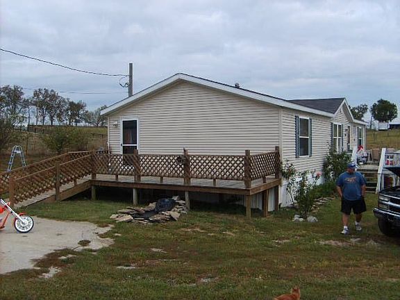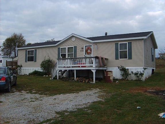 Check out this home approx 12 miles from I64. 2000 model double wide on approx. 2 acres. Includes 3 bedrooms, 2 full baths, living room, kitchen, dining room, and utility. Front Porch and Side deck with wheelchair accessible ramp. Central heat and air. 1 car detached garage with concrete floor and electric. Call Amy today at 585-1710.