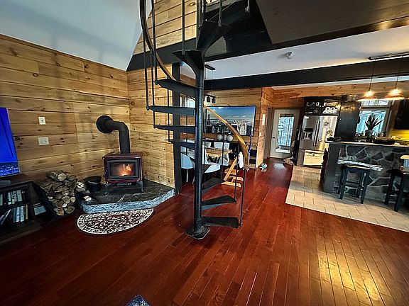 This wonderful 4-bed, 3-bath home features an open concept floor plan, beautiful hardwood flooring, and many updates! The kitchen and main living area are located on the second level, overflowing with natural sunlight against the well maintained pine sided walls. The open bright kitchen has granite countertops and a custom made breakfast island, molded with stone and a built-in stainless steel oven. Enjoy meals in your dedicated dining nook, with a peaceful ambiance that your guests will love. Sip your morning coffee out on the enclosed porch, that over looks the private balcony out to your very own 4 acre lot. The living area provides a cozy atmosphere with plenty of space for loved ones to gather. You'll find the loft up the spiral staircase, with a bonus area to make your own! Directly across is the Master-bath, complete with a large jacuzzi tub, and closet space. Additional 3-good sized bedrooms with a shared full bath reside on the first floor for convenience. Outside, you'll find a woodshed and additional quaint red barn for storage! Find tranquility next to the coy pond, or simply find yourself engulfed with the beauty of nature that surrounds you! If you are looking for an updated home with privacy and fiber optic internet, you will not want to miss this charming property! Schedule your showing today!