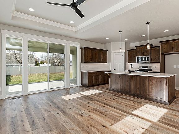 This newly custom-built home is nestled in the Sumpter Cove subdivision near the Boise River, Eagle Island Park, golfing, restaurants, shopping, and more! This single level floor plan is very functional with tons of windows for natural light. The kitchen features large island, quartz counter tops throughout, LG gas cooktop, large stainless-steel sink, Bosch dishwasher, & walk-in pantry. This home has 3 bedroom, 2 baths, and a den. The backyard patio is perfect for family gatherings with its large covered patio. It also has a nice size backyard with a shed for storage. Last, this home has a large 2 car garage with room for a shop or gym.