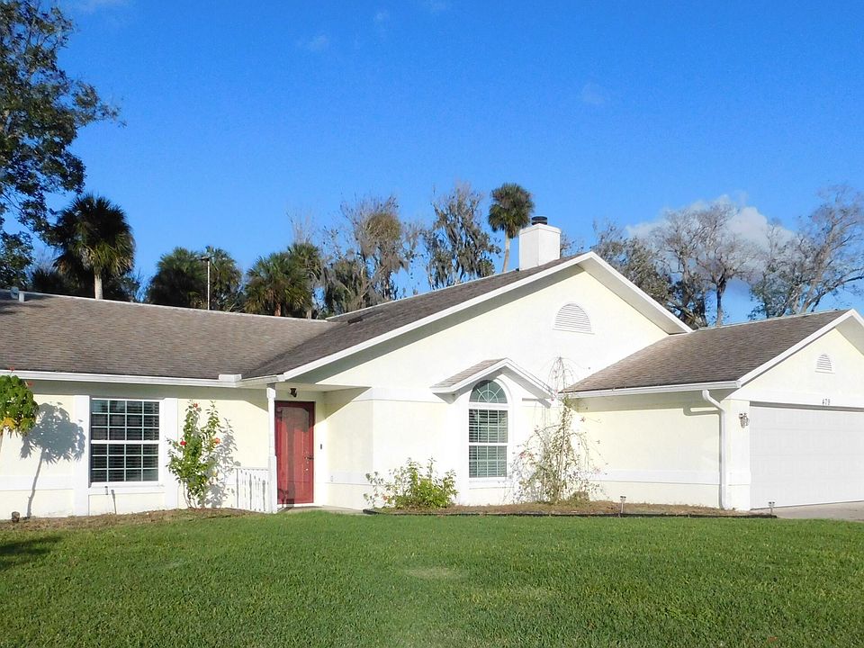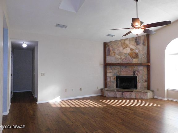 One or more photo(s) has been virtually staged. Welcome to your perfect Port Orange paradise! Discover this stunning 3-bedroom, 2-bath split floor plan home in the heart of Port Orange. Nestled in an established, meticulously manicured no-HOA neighborhood, this residence is just moments away from the beauty of Spruce Creek Park, local favorites like Neighbor's Ice Cream Parlor, and only a 15-minute drive to the world-famous Daytona Shores Beach! Step inside and experience modern comfort with recent upgrades designed for peace of mind and luxury living. Upgrades include a State-of-the-Art Master Bath Remodel featuring a luxurious shower system (2024). Hurricane Windows (2019) for security and efficiency. Luxury Wood Plank Flooring (2018) offering durability and style. New Garage Door (2024) and A/C System (2019) for year-round comfort. Garbage Disposal (2024) for everyday convenience. Take pleasure in entertaining friends and family with the open floor plan, cozy wood-burning fireplace , vaulted ceilings, bonus entertainment room and back patio. Additionally this home boasts endless storage options including a primary bedroom walk-in closet, large full length closets in additional bedrooms, walk-in pantry, dedicated laundry room, large Storage Shed / Shop and much more. Enjoy a private oasis that is backed against private farm land and experience the ultimate Florida lifestyle with easy access to top dining, entertainment, and water sports. Whether you're relaxing at home or exploring the vibrant surroundings, this property blends comfort, quality, and location in perfect harmony. Don't miss out on this move-in ready gemschedule your private showing today!