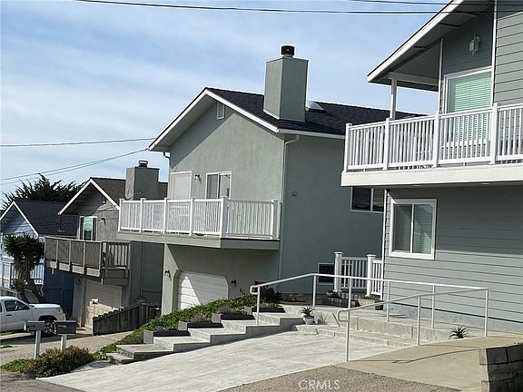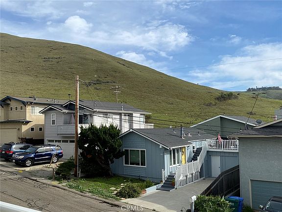 Amazing Ocean and Morro Rock view from inside the home and on the spacious 2nd floor balcony. Home is located on the North side of the street in North Morro Bay. Beautiful sunny exposure. 2 bedrooms and 1 full bathroom on the bottom floor. Primary bedroom and ensuite full bathroom on 2nd floor. Large kitchen and 2 livingroom spaces, one with a fireplace. 2 car garage. Vaulted ceilings and skylights on 2nd floor throughout make all the rooms very bright and spacious. Gas/wood fireplace. Paved driveway.