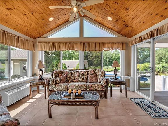 With incredible living spaces inside and out,this owner-built home will meet all of your needs.The covered front porch & landscaped front yard set the tone for curb appeal, w/ glimpses of trees that line the backyard.Step inside to an open floor plan w/ crown molding & hardwood floors on the main level.The living room runs from the front of the house to the back, w/ a fireplace for cooler seasons. Prep meals in the kitchen where a central vac with island dustpan makes cleanup easy.Sit down to eat with loved ones in the breakfast nook or formal dining room.A four-season sunroom adds additional living space where you can enjoy sights of the beautiful backyard, which is surrounded by land trust. Upstairs,both bathrooms have radiant heated tile floors,a comfort youll never want to give up.Off the sunroom,a covered deck lets you feel the summer breeze while relaxing in the shade. For more sun, lounge on the stamped concrete patio surrounding the heated saltwater inground pool.The pool house with half bath and an outdoor firepit make it easy to spend the entire day outdoors.Workshop and storage space is ample, w/ an attached two-car garage w/ radiant heat in floor, separate garage, full basement, and walk-up attic.The home and detached garage are equipped with a security alarm. Additional features include an oil furnace and woodstove in the basement,central air w/ 2 units, and automatic whole house generator. Close to shopping,beaches,& casinos.Call today for your private showing!