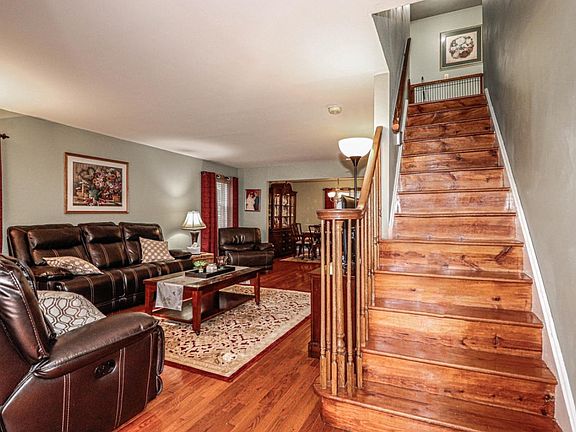 This beautiful Colonial has lots of nice upgrades to boast about. Real hardwood floors in living room,dining room and in 3 spacious bedrooms. Large EIK has granite backsplash down to the counters. The wide panel tiled flooring Compliments this large space. There are also newer sliders that lead to cozy deck and patio. The large backyard, host a nice sized above ground pool. The 3 bathrooms were upgraded with Spa-like features. The Master shower has a rainfall shower head in this spacious shower stall. Gleaming updated marble vanity top brightens this area. The overhead light fixture is a state of the art Bluetooth speaker The large master suite has two closets, one being a full entry closet. All bedrooms have ceiling light and fans. The full basement is partially finished .Shed in As-Is Condition.