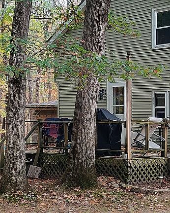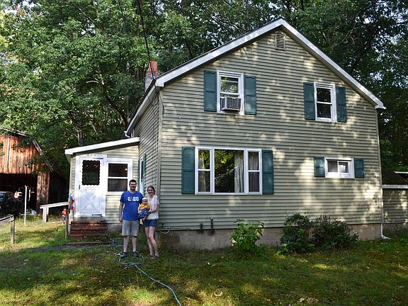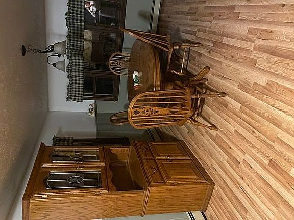 4/5 bedroom house with all brand new floors upstairs and living room. All new appliances. Big kitchen with lots of cabinets and counter space along with a bar and nice size dining room. Foyer area is off three season porch. Large living room, full bath and den/ bedroom on first floor. Big deck on back of house on 5.6 acres of property. All bedrooms are nice size and there is a full basement with washer and dryer. 2800 square foot barn with two car ports and an area in the back for storage. Paved driveway and beautiful landscape. All on 5 1/2 acres.