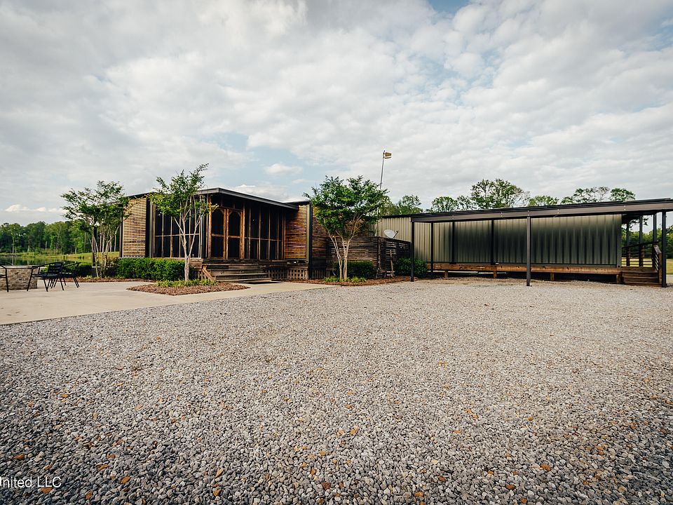 light and picturesque views of the lake and property. Four bedrooms, two baths, wooden floors throughout, a kitchen with stainless appliances and an open great room make-up the home. You'll want to note the electric and solar connections, as well as the back-up 85kw generator. Outside, there are just as many great features: beautiful landscaping, a large, covered deck, floating pier, a firepit that backs up to the lake wall, ample parking space and a 30' x 40' solar powered metal