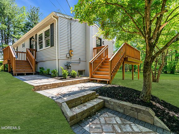 Welcome to this completely updated open concept modern raised ranch siting on a acre of country like grounds. Full finished Above ground Basement with walk out access, high ceilings with large spacious recreation / play room. House was renovated top to bottom including New Roof. HVAC. Doors, Flooring, New modern trimmings, Lighting Fixtures, Vanities, Recessed lighting thru-out, All new stunning open concept kitchen with new Quartz counter tops, stainless steel appliances, tile backsplash. New beautiful spacious extended Dining / Living room that exits to new deck overlooking the private back to woods serene Landscaped property and yard. Primary bedroom with walk in closet & Master bath. Tiled bath and shower. Paver walk way.