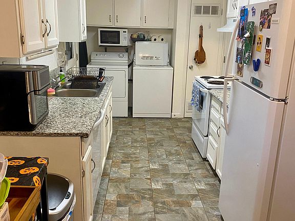 Quaint ranch style duplex. Large living room, kitchen with all major appliances and cute eating area. Washer/dryer hookups. Good size bedrooms with large closets, full- remodeled bathroom for them to share. Very private backyard with covered patio and mature landscaping. Huge front yard, one car attached garage. Tenant responsible for all utilities including water.