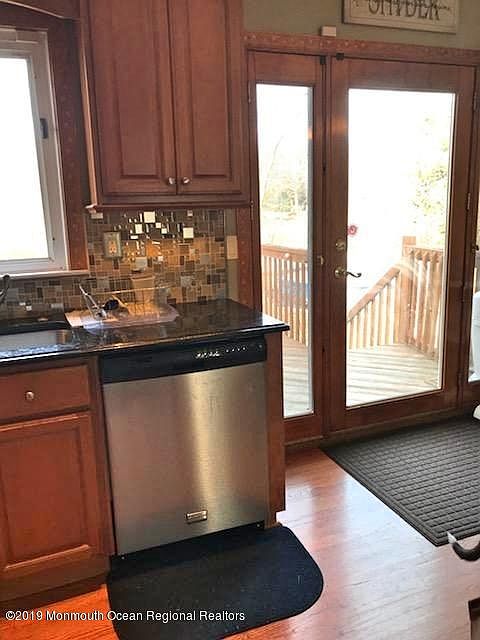 Welcome to this home in Hazlet Township with great schools, nothing to do but unpack! The 2nd floor has a beautiful custom eat-in kitchen complete with stainless steel appliances, granite counter-tops and glass black-splash & a door leading to a massive 2nd floor deck; newly refinished hardwood floors through-out; Living Room with large bay window; 2 spacious bedrooms with generous closets; Updated Full bathroom. On the 1st floor you'll find another spacious bedroom; brand new half bathroom; new wood-look tile floors; Wood burning fireplace in the Family Room with a slider leading out to the back yard. The vinyl fenced yard will be a favorite gathering place complete with a recently poured concrete patio, pathway & an above ground pool with attached sundeck, you're own summer oasis!