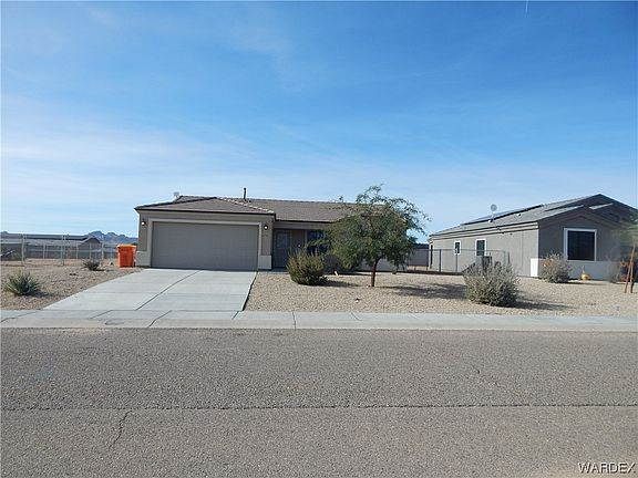 Looking for a home that is under two years old and is accessible within about 35 minutes from the Colorado River (West) and the Hualapai Mountains(East)? Then Golden Valley is the place to live! This all Electric home is the Juniper Jr 1205 model and was built in 2022.This home has vaulted ceilings, granite countertops, rear kitchen with casual dining area,open floor plan, split bedrooms with two full bathrooms. Indoor laundry room. Washer, Dryer, Refrigerator that are less than two years old STAY! Fully fenced backyard (Chain Link) with automatic watering system.Two fruit trees:Lemon and Fig. RV/Motorhome Gate plus RV Hookups(50 AMP) on the southside of the yard. Buyer and Buyers agent to perform due diligence on what is deemed important including the information on the MLS.