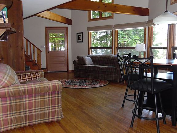 120 ft waterfront Peck Lake! Unique home move in ready! Classy updates include; New Kitchen w/solid maple cabinets, granite counter tops. New baths w/porcelain tile flrs. Hardwood floors throughout. Elec heat & pellet stove. 4BR plus loft easily sleeps 10+ Deep lot with plenty of privacy. Screened porch overlooks the serene lakefront. Steps to the lakefront decks/dock. Relax and watch the loons, catch some fish, this is a wonderful property! Just bring your swimsuit enjoy! Taxes $6700!! w/out exemptions!