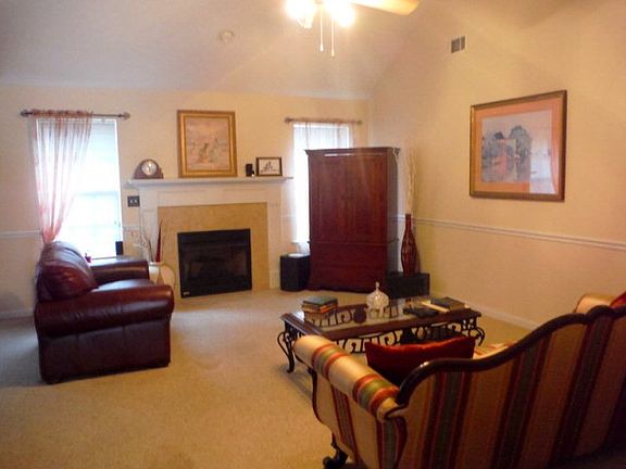 Most popular plan - the Shiloh - with screened porch off breakfast room. Eat in kitchen with pantry. Dishwasher and built-in microwave brand new! Great room has vaulted ceiling and gas log fireplace. Carpet has been cleaned throughout. Master Bedroom has trey ceilings. Master bath has a garden tub and shower. Walk-in closet. Back yard is privacy fenced on back and right side. Walking trail on the left side with green space and park across the road in front of the house. Screened porch on the back of home. Super easy to show.