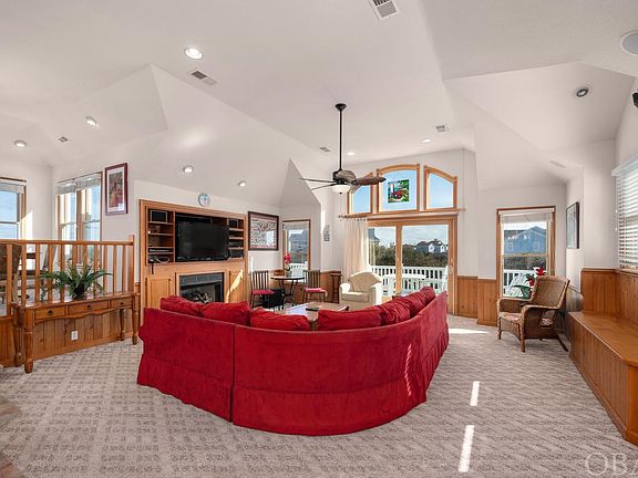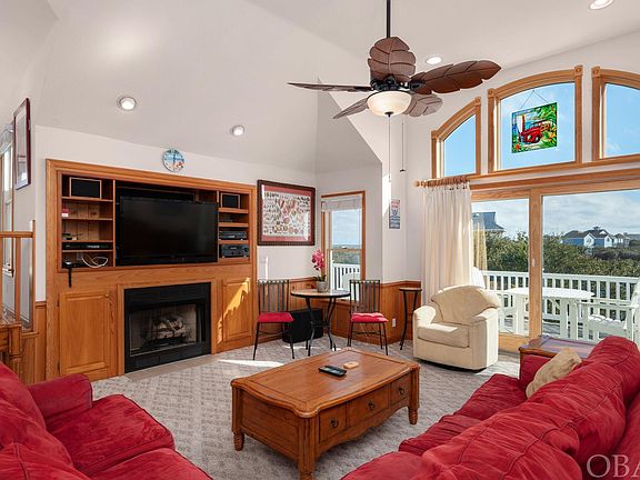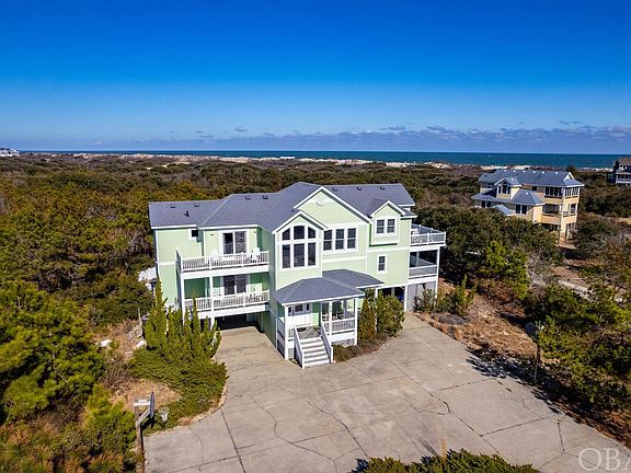This expansive vacation home in the sought-after gated community of Spindrift offers 6 bedrooms, including four en suites, and 5.5 bathrooms. Boasting over 3600 square feet of coastal living space on a generous x-flood zone lot, this home features ocean views from its upper levels, a reverse floor plan, 2 hot tubs, private pool, a den and game room. The heart of the home lies on the upper level with its expansive open floor plan, where a family room featuring a gas fireplace, flanked by built-in bookcases, invites cozy gatherings. The family room is showcased by cathedral ceilings, wood wainscoting and plenty of natural light from the many windows and a sliding glass door to the sun deck with ocean views. Culinary delights are easily prepared in the spacious kitchen adorned with Corian counters, a pantry, stainless steel appliances including a double oven range, two dishwashers, and a French door refrigerator, all accented by a convenient breakfast bar for casual dining and entertaining. Embrace the coastal lifestyle further with an elevated ship's watch dining area, boasting more ocean views, creating a picturesque backdrop for memorable meals and gatherings. Whether savoring sunrise breakfasts or sunset soirées, this vacation home offers a captivating setting to create lasting memories. The oversized primary en suite on the upper level offers a spa-like retreat featuring a private bath with dual vanities, a deep jetted tub surrounded by custom tile, and more natural light. Enjoy morning coffee or star gaze from the private balcony. On the mid-level, the home's thoughtfully crafted layout unveils itself, featuring a cozy den ideal for relaxing or watching TV. Direct access to the sun deck leading to the pool area below, along with an enclosed sunroom, offers flexibility for outdoor entertaining. This level also finds 2 more ensuite bedrooms with well-appointed bathrooms. One en suite boasts a private balcony, and the other features access to the covered deck with the first of two hot tubs. Two guestrooms, a full hall bath and laundry area complete this level. The ground level hosts a large game room with a billiard table, easy care flooring, wet bar, and a full bath shared with the final guestroom. There is also a large utility room/owner space with another full sized washer and dryer, as well as another refrigerator. The epitome of coastal indulgence awaits outdoors, where a private pool beckons for leisurely swims, complemented by a charming cabana with another hot tub for shaded relaxation. Located just four lots from the beach access, this spacious home offers proximity to the shopping, dining, and attractions of Corolla and the northern beaches. Experience the epitome of ocean side living in this exceptional Spindrift vacation home where every detail has been meticulously curated to offer comfort, convenience and coastal charm.