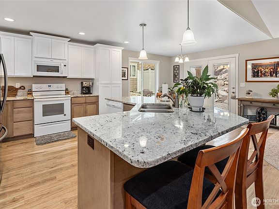 Stunning like-new single-level home in SunCrest at Lake Chelan! Just a short walk to downtown and the lake, this 3 bed, 2 bath home features an open floor plan with vaulted ceilings in the great room. The spacious primary suite includes a walk-in closet and double-sink vanity. Enjoy granite counters in the kitchen and baths, laminate and tile flooring throughout, and an oversized 2-car garage. A large concrete patio offers the perfect space for outdoor living. Located near school baseball and soccer fields, this home blends comfort, convenience, and charm in a prime location. Welcome home!