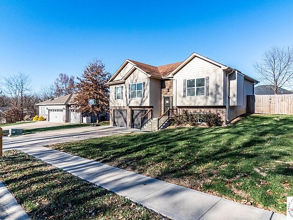 Absolutely Beautiful 4 Bed/3 Bath home located in a quiet cul-de-sac close to shopping, restaurants, & entertainment. This spacious home has beautiful engineered hardwood flooring with an open concept. The spacious living rooms boasts an electric fireplace and high ceilings. The eat-in kitchen/dining offers plenty of room for the whole family and extra seats at the breakfast bar. Kitchen features custom cabinets, granite countertops, a pantry, and all kitchen appliances stay. The master bedroom boasts high vaulted ceilings and a walk-in closet. The en'suite master bath offers a large spacious walk-in shower, double vanities, & a linen closet. The main level of the home also features 2 more bedrooms and a bathroom. Downstairs you will find a family room, laundry/full bathroom, a large spacious bedroom, and access to the double car garage. This home offers a huge back yard with newer privacy fence and a storage shed. Short commute to Whiteman Air Force Base