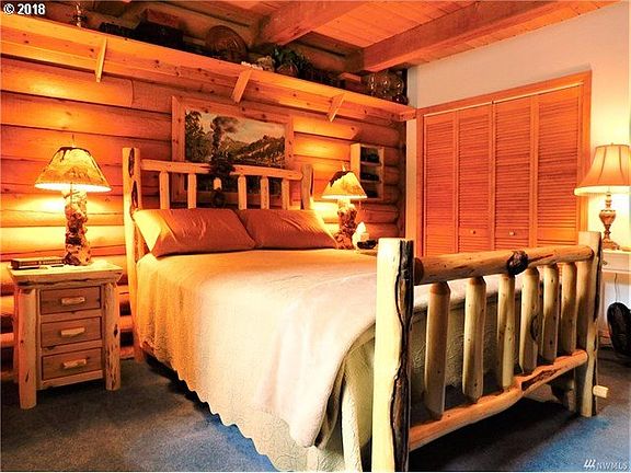 FIRST TIME ON THE MARKET WITH THIS ONE OF A KIND HANDCRAFTED LOG HOME ON 6.2 AC. Enjoy the quite setting & the array of wild animals as visitors. 3 bed 2 bth 1966 SQFT.2 bed 2 bth & wood burning stove on main flr,upstairs offers the master bd/bth and private deck overlooking grounds with an additional lrg loft room overlooking the living rm. Home has an abundance of storage with new 50 yr roof '09. Could make a nice Single level living.
