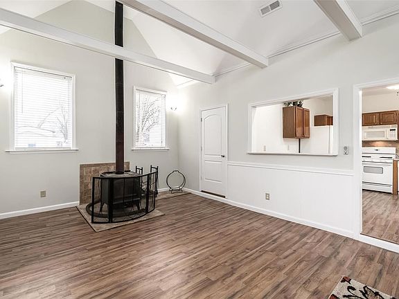 Updated historic home with 2 bedrooms plus a bonus loft space. New vinyl flooring throughout the entire main level and fresh paint make this home bright, clean, and move-in ready. Large eat-in kitchen with new countertops, new dishwasher, gas stove, pantry, refrigerator, and lots of cabinets. Kitchen opens into living room with woodburning fireplace, vaulted ceilings, and lots of natural light. Large bathroom with new shower enclosure, new double vanity and sink, and convenient space for w/d. Covered patios on front and side of the house provide lots of outdoor entertaining space. Detached garage with plenty of parking on this large corner lot. All appliances can stay! Owner offering 1 year HSA home warranty also!