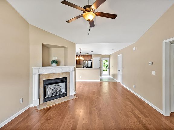 MULTIPLE OFFERS RECEIVED **Newly Updated** 2 bedroom, 2 full bath duplex (left side only) with brand new carpet, new vinyl flooring, fresh interior paint throughout. Brand new refrigerator and matching GE washer/dryer convey! Gas log fireplace and hardwood floors in family room and dining area. Tray ceiling in large primary bedroom, primary bath and walk-in closet. 2nd bedroom has large closet and full bath only steps outside bedroom door. Newer 50 gallon hot water heater, air ducts cleaned and extra space in attached storage closet. Parking in rear of home with 2 car parking pad. Home has many possibilities ie. First time buyer, investment/income generating property, downsize low maintenance home....