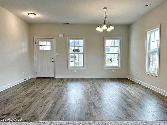 Welcome to the highly desired & popular community of Onslow Bay. Brand new construction built by Onslow County's most trusted & preferred builder, featured in Builder 100/ Top 200 Builders in the country. Onslow Bay is a hot spot, 3 miles to MCB Camp Lejeune's Piney Green gate, 14 miles to New River Air Station & minutes to area schools, shopping & dining. This beautiful neighborhood is sure to impress, complete with a clubhouse area & community pool. Welcome to the Marvin! 4 Bedroom/2.5-bathroom, approx. 2229 heated square feet. This home has great curb appeal with a nice sized front porch and a clean, classic landscape. Very open floor plan and great for entertaining. The kitchen is a dream! 11 x 16 open to a 9 x 12 breakfast nook. Kitchen boasts lots of cabinets complete with an island for extra counter space. Stainless appliances include a smooth top range, dishwasher, and microwave. Kitchen is complete with a walk-in pantry! The kitchen is open to the 18 x 16 family room. Family room accented by a beautiful fireplace and ceiling fan. All bedrooms are on the second floor. The master bedroom is spacious – 15 x 16 with a walk in closet and sure to please any homeowner. Master bath to include a double vanity topped with a custom mirror, separate tub, and shower. Separate laundry room also on second floor. This charming plan also has an open patio and 2-car garage. Call today! NOTE: Floor plan renderings are similar and solely representational. Measurements, elevations, and specs may vary in final construction. Limited selections for buyer to choose. Call L/A to verify.
