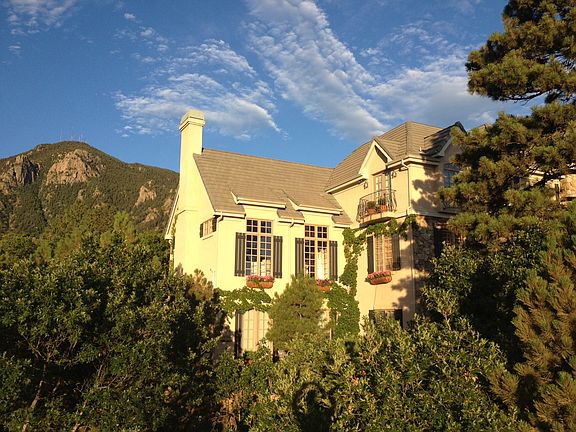 Elegant home with European flair in The Broadmoor Resort Community. Shuttered windows, window boxes, private balconies and meticulously maintained grounds for the avid gardener. This home has natural light which is reflected in every space in the kitchen and family room. Upscale amenities include coffered ceilings, crown molding, hardwood floors, granite countertops and large windows to maximize the views. Upper level master suite with sitting area, two adjoining baths with private balconies to enjoy both City and Mountain views. Lower level family room with coffered ceiling, full wet bar with beverage cooler, dishwasher, microwave, and walkout to patio. Enjoy long warm summer nights on the charming patio surrounded by lush gardens.