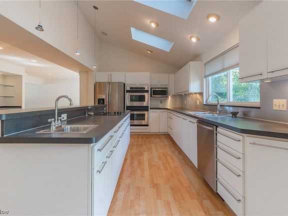 This spacious 5 bedroom colonial has laminate flooring throughout most of the home for easy care. A first floor office/study with adjacent 1/2 bath is ideal for those who work from home. The eat-in kitchen was enlarged and extended, resulting in a very large gathering area and a center island breakfast bar. Skylights bring in natural light for a bright modern look. The kitchen has white cabinets, 2 sinks, and stainless appliances. The family room has a gas fireplace and a wall of built-in shelving with glass shelves and lighting. The master bath has both a large soaking tub and a shower. The large master closet is almost 10 x 13! The garage has textured painted floors and heat, hot and cold water, and electric outlets. The full basement has an Ohio State Waterproofing System. The fully fenced back yard has extensive gardens, a large deck with a pergola, shed, chicken coop, and two small decorative ponds. The gardens are an amazing array of colors, especially in the Springtime – almost like visiting an arboretum. This wonderful home has so much to offer, both inside and out!