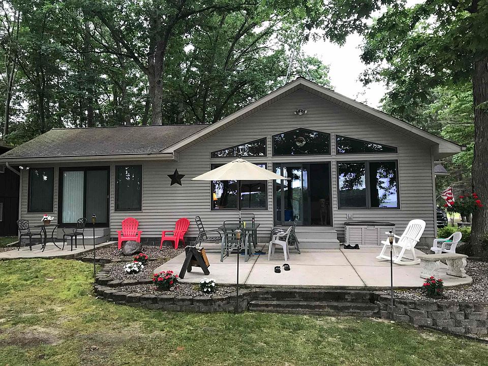 Waterfront Home on All-Sports private lake. Beautiful 1/2 acre lot on Lake Lancelott. This 5BR/3BA Ranch style home has sandy beach area , removable dock, mature trees, full basement. 2 plus car garage. Home is 2024 square feet of open living space with vaulted ceiling and large door walls that give you beautiful water views. Home is in perfect condition throughout with updated quarts kitchen counters. Come enjoy all the ammenities of Sugar Springs with two gorgeous lakes, two beautiful golf courses, restaurant and pub, heated saline indoor pool and fitness center, tennis, activity centers, beaches and picnic areas with bath houses, boat slips, boat launces, and much more!!