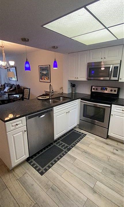 Very quiet 55+ Gated Community First Floor 2/2 Condo Sold Turnkey! This beautiful Unit comes with granite counter, updated cabinets, stainless steel appliances, wood like tile floors throughout, furnishings and more. This tucked away community is conveniently locate in Ft Myers walking distance to shopping, restaurants and just minutes from downtown Ft. Myers. Call today for your own private showing, you will be very impressed.