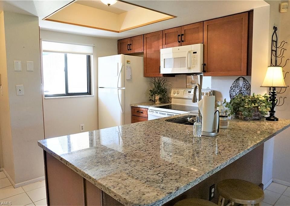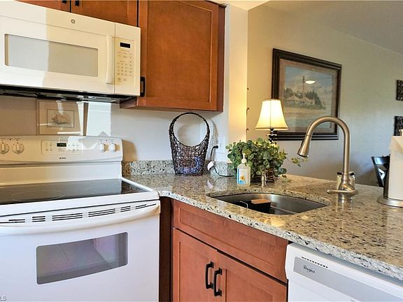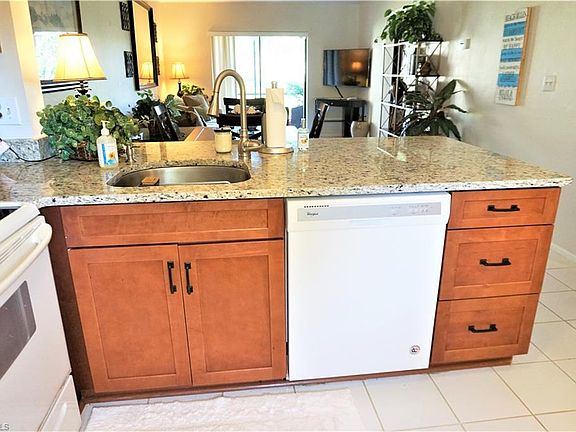 Ready and waiting for you! Picture perfect first floor condo tucked back in a great community that's very conveniently located in Fort Myers. This condo is being sold turnkey so all you do is move in and start living the Florida lifestyle. Beautiful newer kitchen with soft close cabinets and drawers, newer appliances, granite counters and a pantry. A big breakfast bar with stools that's open to the dining and living room giving it open concept living. Tastefully decorated throughout with dining room table that folds out for more entertaining, comfy couch for lounging and a brand new TV. Hunter Douglas window blinds throughout, tile flooring in the main living area and carpet in the bedrooms. Master bedroom has a nice walk in closet and a remodeled en-suite bath with a big tiled shower. The guest bedroom and remodeled bathroom are set up and ready for your guests to arrive. Inside laundry with newer stackable washer and dryer. Walk over to the sparkling pool and savor the sunshine or relax on your cozy lanai and enjoy the Florida breezes. Very affordable HOA fee in a well maintained community. Call today for your private viewing of this fantastic opportunity.