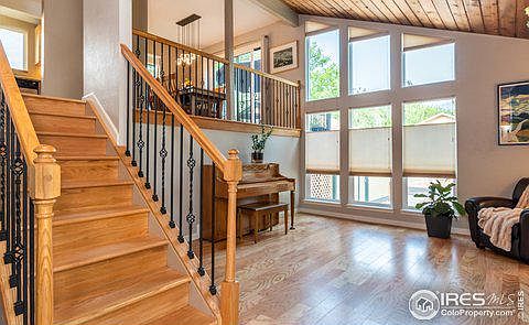 Showings begin Friday 8/28. Sunny updated 4 BR home just two houses from beautiful Tantra Park & CU South trails! Engineered hardwood floors on all levels. South facing updated kitchen w/shaker style cabinets, granite counters, stainless appliances. Dining rm opens to newer Trex deck w/Flatirons & foothills views. Vltd living rm w/cozy fireplace. New windows 2016. Delightful fenced front yard plus lovely and private flagstone patio side yard. Lower level walk-out. Two car garage. Central A/C. Just around the corner from CU South for a massive network of trails or head over to Tantra Lake, or Tantra Park & playground on west end of the neighborhood. Fantastic South Boulder location near hiking, shopping, transportation, & dining.