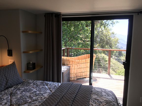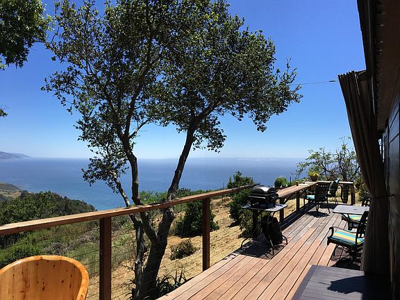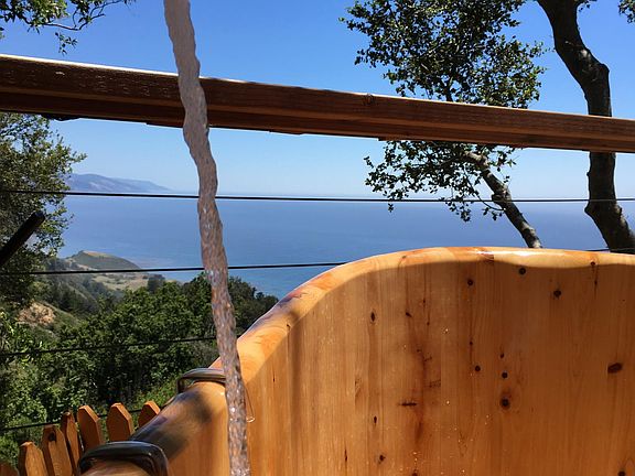 The cabin is sterilized with an ozone generator between guests. Just 1/2 mile up a paved and gated drive is Vista al Mar. Perched 1,200 ft. above the Pacific Ocean in Big Sur, this cabin boasts the most spectacular views of the California Coastline. Surrounded by lawns and gardens, it's the perfect vacation spot for two guests. There are ocean views from every room. Arrive and relax on your private, quiet and secluded deck and melt your cares away in the Japanese wooden soaking tub. Lounge by the private pool with 270 degree views of mountains plunging into the sea--the panoramic views that have made Big Sur famous. The cabin is in an exclusive area of Big Sur where peace, privacy, quiet and tranquility are the primary commodities. This is a perfect getaway for the artist, writer or couple looking to experience the magic of Big Sur. You can prepare your meals in the well-equipped kitchen or use the gas grill on the deck. If cooking isn t on your agenda, world-class dining at Post Ranch Inn's Sierra Mar is within walking distance. Ventana, The Big Sur Bakery, Big Sur Taphouse, Nepenthe and The Cafe Kevah are all also within walking distance, or a very short drive. The nearby Taphouse and Deli are popular with locals and have great takeout menus. Big Sur Roadhouse, Ripplewood, Big Sur River Inn, Fernwood, The Big Sur Lodge and Deetjens are all within a short driving distance. Vista al Mar is located right in the heart of Big Sur, just south of Pfeiffer Big Sur State Park and Pfeiffer Beach. The property has sweeping ocean views of Pfeiffer Point and Wreck Beach to the northwest. Looking southeast down the coast you can see Piedras Blancas Lighthouse 60 miles away on a clear day. The main bedroom looks down the dramatic coastline from the a California King bed with a sliding patio door leading onto the deck with the Japanese soaking tub. Upstairs there is a 200 sq. ft. two sided sleeping loft. One side has two twin beds. The other side has an xl twin bed and a desk. The sleeping loft ceiling is 51" high. The loft is comfortable for sleeping and sitting and has ocean views from both areas. This space can be used for occasional pre-approved guests visiting overnight during your stay, such as friends or adult children. There will be an additional $50 per person per night fee. The house has one bathroom with a tub, shower combination. Sit back on the deck and watch the whales spouting and sometimes even breaching. See schools of dolphins and abundant wildlife such as deer, turkeys, condors, hawks and numerous other creatures. Take photos of sunrises and sunsets. Relax in the evenings watching a cheery fire burning in the stove and listen to your favorite music through the bluetooth sound system. A smart tv is provided in the living room with Directv hookup and CD/DVD/Blueray player. Internet is provided and cell phone service is excellent. Playing cards and an assortment of board games are availabe, along with an assortment of books about Big Sur and it s history. Come and enjoy Big Sur from a location that is unlike anywhere else in the world, private and yet within easy access from Highway 1, making your vacation more relaxing. Schedule a massage from a local masseuse. Enjoy a hike. Go to the beach. Relax by the private pool and soak up the views. Sunrise over the Santa Lucia Mountains and sunsets over the Pacific all included. Explore the nearby attractions. The Post Gallery, Post Ranch Mercantile, Hawthorne Gallery, The Phoenix Shop, Henry Miller Library, The Coast Gallery and Pfeiffer Big Sur State are all nearby. Andrew Molera State Park is 7 miles to the North, McWay Falls and Julia Pfeiffer Burns State Park are 9 miles to the South. Pfeiffer Beach is only 3.5 miles away. No parties or loud activities are allowed as per property CC&Rs. This is a place to relax and unwind surrounded by peace and quiet. It is a retreat from the world. No persons under 21 yrs. A complimentary 2-3 mile private guided hike through redwood forests, meadows and chaparral is included with your stay. There will be housekeeping services once per week @ $100 per week. Maid services are also available at $25 per hr. at any frequency if desired while staying at Vista al Mar. Detailed directions to this incredible vacation spot will be given at booking. Booking is for 30 days, come and go as often as you like. Have your own weekend get away in Big Sur for a month. Reviews: Joel says; If you're considering this property, book it now. It s extraordinary. Big Sur is an experience. Leave your selfie sticks at home, bring a book (reading, journal, sketchbook etc.), and just "be" in this magical place. The setting is inspiring. Truly - as good as it gets. The cabin itself is warm, comfortable and stocked with everything you could possibly need. You can spend time here looking out at the vast ocean (from the cabin and property) and at night the sky is so clear you can gaze into other worlds while soaking in the Japanese soaking tub. You won t meet better hosts than Mark and Karen. They are amazing. We are already planning our return visits. Sarah wrote; My stay in this Big Sur cabin was like a dream that far surpassed any hopes I had coming in. The cabin is surrounded by a beautiful garden with delicious fresh vegetables that I was encouraged to eat, as well as sweeping breath-taking views of the ocean and surrounding hillsides. There is a very clean pool ideally located on the cliffside overlooking the ocean with picturesque views of the coastline and sunsets. As beautiful as they are, the photos do not do the landscape justice. The cabin itself has large windows to take in the views, a cute little fireplace, and is very clean, quiet, and comfortable, with all the key essentials and many additional thoughtful touches. The bed and pillows were extremely comfortable - I don t remember the last time I slept so well. Mark and Karen are extremely generous, kind, and communicative hosts who put a lot of thoughtful consideration i