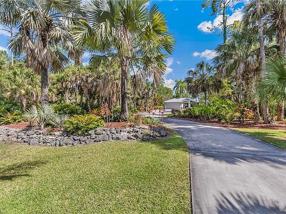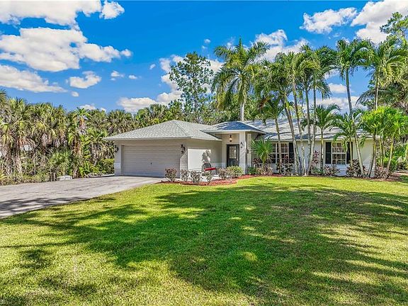Amazing home on an oversized lot in a prime Naples location west of Collier Blvd. This great 3 bedroom plus den, 2 bath home is situated on a large 2.25 acre lot located at the very end of dead end road for low traffic volume! The interior of the home is nicely finished with tile or hardwood floors throughout the home, kitchen that has tile floors, granite counters, and stainless steel appliances, and 2 baths with tile floors and granite counter vanities. Additional interior features include a large bonus room/den next to the lanai that is currently being used as a second living room, large owners suite with en-suite bath with walk-in shower and 2 additional guest bedrooms. The exterior of the home boasts a beautiful screened lanai with a refreshing in-ground pool and relaxing in-ground spa as well as a large covered area for entertaining all of your friends and family. Other exterior features include a multitude of mature landscaping plants, native trees, and beautiful palms. At the rear of the property their is a new (2023) storage/workshop building with electric hookup. Updated mechanical/maintenance features include a newer roof (2022), HVAC system (2019), water heater (2024), pool pump (2023), pool heater (2019), water treatment system, and new generator that has not been hooked up. Located within minutes of several Gulf beaches, world-famous 5th Avenue, shopping, restaurants, and all the amenities beautiful Naples has to offer!