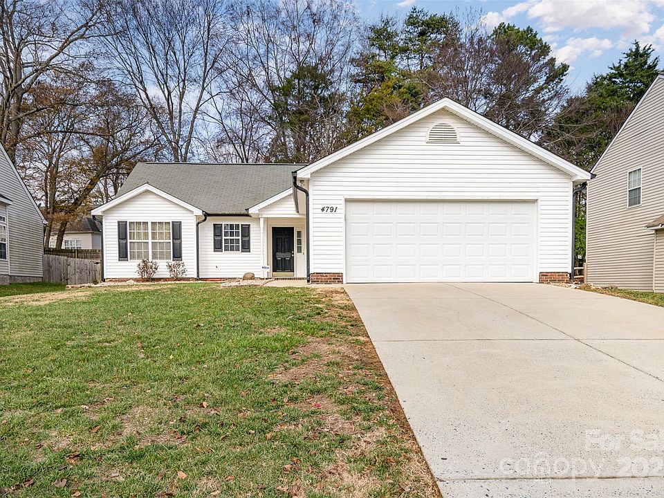 Welcome to this beautifully maintained 3-bedroom, 2-bath RANCH home is located in the desirable Covington neighborhood, offering the perfect combination of convenience and comfort. Ideally situated with easy access to both Concord and Charlotte, you'll be close to restaurants, Concord Mills, and Lowes Motor Speedway. Inside, the home boasts a spacious open floor plan with split bedrooms, providing both privacy and functionality. The main bedroom suite offers both a large tub and easy walk-in shower. Step outside to enjoy a lovely patio and a fenced-in backyard, ideal for entertaining or simply relaxing. The garage is a standout feature, with a dedicated workspace and insulated doors, making it perfect for all your DIY projects.
