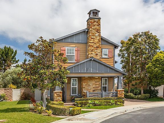 Nestled in the prestigious Brightwater community, just a stone's throw from the coast, this Sands home epitomizes Southern California living. Its charming craftsman-style facade welcomes you with a gabled roof, stone chimney, and a picturesque tree-filled neighborhood view from the front porch. Enjoy peace and quiet with a private driveway and no rear neighbors.