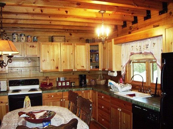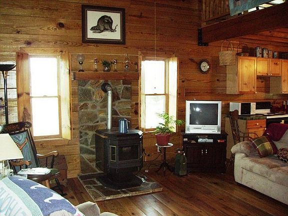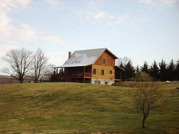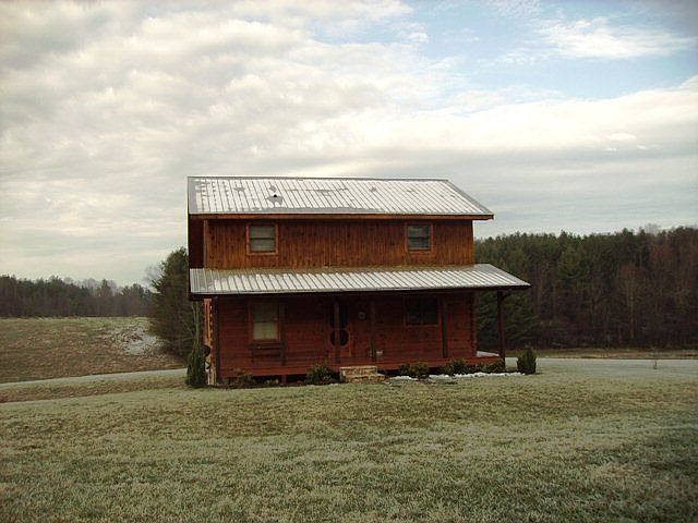 Darling log home, perched on a hill overlooking beautiful pastoral surroundings, boasts 2 rocking chair porches & 1.4 acres. Main level greatroom/vaulted ceilings/pellet stove/wood floors. Nice kitchen/ceramic countertops. Large master bedroom & bath/claw foot tub for soaking. Upstairs den & large 2nd bedroom & bath. Full basement for storage. Enjoy pure mountain living in this home! Great getaway