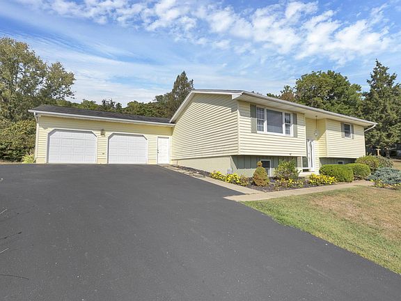 Step into this immaculate 3 bedroom, 2.5 bathroom home nestled atop 1.2 acres of serene, elevated land, offering unmatched panoramic views of farmland as far as the eye can see. This open-concept home is designed for seamless living with spacious rooms filled with natural light. The heart of the home features an updated kitchen with huge pantry, living area, family room and half bath that flows effortlessly in to a wrap around rear deck, perfect for entertaining or simply soaking in the breathtaking countryside. Enjoy privacy galore. Additional features include: Oversized 2-car attached garage, finished lower level with additional bedroom, large full bath/utility room and ample storage. This property combines modern convenience with tranquil charm of country living. See A2A remar