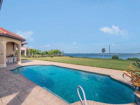 WHAT A VIEW!!! LOCATION LOCATION LOCATION . This spectacular home offers CBS construction, hurricane impact rated windows and doors, tile roof, summer kitchen, salt water pool. Enter this residence and immediately experience the STUNNING RIVERFRONT VIEW as well as throughout the house For less formal gatherings with family and friends there is plenty of room to socialize in the gourmet kitchen (a Chef's dream) with eat-in bar, breakfast nook and family room. The master suite also has an amazing view of the river, with large walk in closets, and huge bathroom. For entertaining outdoors poolside enjoy Rocket launches,the magnificent sunrises, and moon rises all overlooking our River.