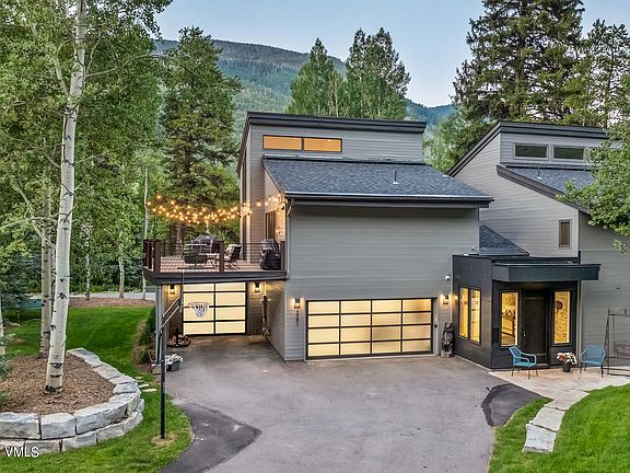 Discover a freshly renovated mountain retreat with dramatic views of the National Forest and stunning cliff bands. Situated on a quiet corner lot, this duplex home offers the perfect blend of privacy and convenience, just steps from the Town of Vail in-town bus and Bighorn Park. Enter a private driveway and enjoy a 4-car garage plus carport, ensuring ample parking and storage for all your needs.
