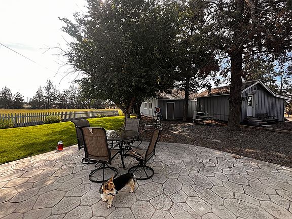 The home and acreage with a view you have been looking for. This home sits on 2.81 acres of COID irrigation with full water rights. The home itself has 2 bedrooms, 1 full bath, large laundry room, pantry, lots of storage space and 128 sq ft screened in mud rooms on both sides off the home. Property has been through site process with Deschutes County for ADU and septic already approved. The home can be made to fit requirements for ADU, and you can build new home or keep current home build ADU. Home has wood floors, brand new wood stove, all newer appliances, newer roof and CEC electric (super lower electric bills). The property has an irrigation pound, irrigation pump and two sets of pod lines which are easy to move. All is very well fenced and crossed fenced has two sets of large animal shelters and chicken coop. There is a 1 bedroom apartment or home office area with a 3/4 bath has a/c and propane free standing stove. There are 2 other main outbuildings 2 car garage 24x32 (768 sq ft) heated with pellet stove also with upstairs storage, then a large 16x20 storage shed with electric and concrete floors. There is a ton of parking for trailers or RVs. Lawn and flower bed area has underground sprinklers on timer and is all fenced in for kids or dogs. This home would make a perfect hobby farm or horse property. When you come to look don't forget to check out the views of mountains and smith rock!