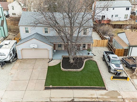 Red Rocks and downtown Denver VIEWS!! GORGEOUS 2-story, single-family home located sought-after Friendly Hills, in Morrison! Covered front porch welcomes you to 5 Bedrooms and 3 Bathrooms. Main level has spacious open layout with Two-Tone Lifeproof Vinyl Flooring, formal Living and Dining Rooms, Family Room with refinished cozy fireplace, and remodeled Kitchen. Kitchen features an expanded floor plan, refinished cabinets, all new stainless-steel appliances and hardware, and custom kitchen racks. Upper level has 4 Bedrooms, including the Primary, which features a private bath and walk-in closet. Secondary Bedrooms are adjoined by a Jack-and-Jill bath, large guest bedroom offers private en-suite & Red Rocks view! Partially-finished basement has 5th bdrm, and utility sink. ALL NEW: Interior Paint, Electrical Breaker Panel, Baseboards, Light Fixtures, Dimmable Can Lights in Kitchen and Primary, Windows, Gas Line for Stove, and updated light switches and outlets with USB ports and GCFI, where needed. Foundation has been stabilized to last for many generations! Large, quiet lot, entire property is freshly Xeriscaped in both the front and back yards, 2 sheds, and 2 garden beds. Conveniently located near C-470 & 285! Minutes to Open Space, Walking Trails, Red Rocks, Chatfield, numerous Dining and Breweries. No HOA! Walk to Weaver Hollow Comm Pool. Multiple Comm Parks! Incredible views and access to the Rocky Mtns! Unincorporated Jeffco (4%tax)! Oversized 2-car garage is finished w/ ADA ramp & epoxy floors and two side drives offers additional parking and storage for RV's, boats, equipment and more. Call now to schedule your private showing in this safe and fun place to raise a family!