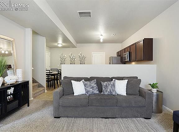 Don't forget to check out the attached floor plan and the 3D Video Tour. This one owner, never rented townhouse has been meticulously cared for and ready for you to love and enjoy. Villa Mirage is in an incredibly convenient location close to the Powers Corridor and many shopping and restaurants for your need. The end-unit townhouse is open on the main level, has an island, eat-in dining area, pantry, with upgraded stainless steel appliances that stay (washer and dryer as well on the upper level) with a spacious living room, and a half bath. As you head upstairs, enjoy the natural light coming in from the upgrade option with added window to the landing/stairwell. The master bedroom is on one wing and two other bedrooms on the other wing separated by a large 6' x 11' laundry room and full-size hall bathroom. The primary master bedroom is unlike others in the community. It has a door that separates the dual vanity, full owner bathroom just in case you need that extra quiet if someone has a different sleep schedule. All colors in the home are neutral to fit any decor. The two car garage enters into the kitchen so you can drop your groceries off right away in the storage/pantry room. There is a community swimming pool that is open for members and once the pandemic improves, there is a workout gym, and rent-able recreation room too. I think you are really going to love it here.