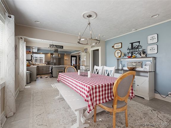 Prime Floyd County location at an amazing new price! This gorgeous Bedford stone and brick ranch is situated on 1.25 acres and has been beautifully updated and modernized throughout. The home offers 3 bedrooms, 2.5 bathrooms, a finished basement, and a functional breezeway with an ethanol fireplace. Additional features include an oversized 2.5-car garage and a 44' x 32' pole barn with electric, a concrete floor, an attached lean-to, and an approximate 20' overhead door—perfect for RV storage. Ideal for contractors or lease the space to generate extra income. Recent upgrades include a York HVAC system, dimensional shingle roof, thermopane windows, B-Dry basement waterproofing system, and added insulation in 2021. This is a well-maintained, move-in-ready home with exceptional potential—schedule your showing today!