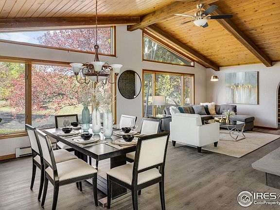 Spectacular 1 acre, 3 Bed, 3 Bath home in the Valhalla Subdivision. Owners will feel secluded but close to all Boulder has to offer. Only 6 miles to downtown Boulder and 0.6 Miles to Boulder Reservoir. Live the Colorado dream with 3,122 Square Feet of living space and 5 garage spaces, perfect for storing all your bikes, skis, boats, snowmobiles, vehicles, and more. Upon entering this home after parking in the half-circle driveway owners and guests will be greeted with an open floor plan, vaulted wood finished ceilings, and a magnificent slate gray fireplace with floor-to-ceiling tiles. Upstairs is an owner's suite with more vaulted ceilings and exposed beams, a recently renovated bath, and a walk-in closet with built-in shelving. The main floor kitchen features stainless steel appliances and imported travertine backsplash leading to a SouthWest facing sun room with a built-in hot tub. Downstairs is a garden-level floor with a utility room, rec room, laundry room, two bedrooms, and full bath. The backyard has a split-rail fence with wire reinforcement and a loafing shed for horses or easy conversion to a shed for more storage.