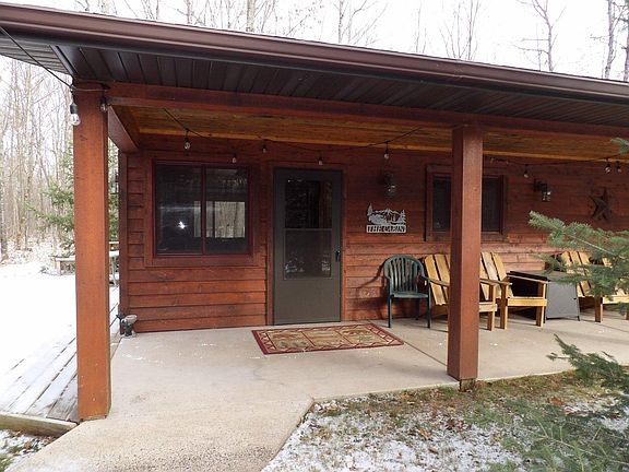 (124/IK) A SPORTMAN’S PARADISE/NORTHWOODS REATREAT! Located in Winter WI 3 miles from Lake Winter and minutes from the famous Tuscobia Trail for snowmobiling and ATV Enthusiasts. Newer cedar sided ranch cabin/home sits on 5+/- wooded acres that abuts public land. The house consists of an open concept, cathedral ceiling, kitchen, dining, and living room with 2 bedrooms and a full bath. All the rooms have electric radiant heat which are independently zoned, and the living room has an LP log fireplace. The 2+ car garage is insulated and heated waiting for all the toys. You are not going to want to miss this one! 2023 taxes: $1,541 (30-39-04 E1/2 W1/2 W1/2 SESW)