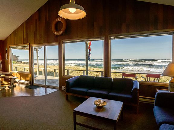 Ocean front in the village area of Neskowin! Wonderful beach retreat. 2 lower bunkrooms with family room. Upper main/level with expansive wrap around deck - ocean view - vaulted ceilings and more.