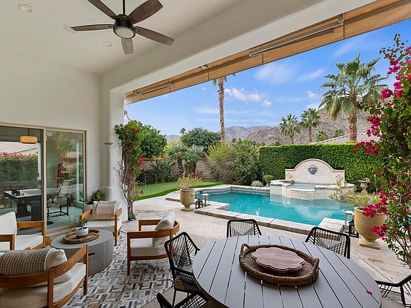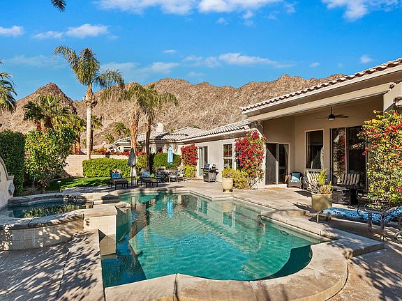 Experience desert living at its finest nestled in the exclusive gated community of Hidden Canyon. This meticulously renovated 3-bdrm/4-bath residence excites the senses with a harmonious blend of modern elegance perfectly matched with exceptional comfort and practical design. With three generously sized bedrooms each with spacious ensuites, this home strikes the perfect balance between style and functionality. The interior highlights architectural craftsmanship, featuring a gourmet kitchen, two games rooms with your choice of an air hockey or pool table, a chic living area adorned with contemporary finishes, and expansive windows framing breathtaking views of the surrounding desert landscape. Step outside into your private oasis, practice your putting on the outdoor putting green. enjoy the serenity where desert features seamlessly combine with upscale living. Nestled perfectly in the San Jacinto mountains and located in close proximity to the famous La Quinta Resort, Hidden Canyon is sheer delight for the health-conscious and spirit-driven. The expansive backyard is a private oasis in itself, featuring a pristine pool and spa and manicured landscaped gardens. Whether basking in the desert sun or finding tranquility in the shade of the covered patio, this space is ideal for entertaining or simply savoring the serenity of the desert!