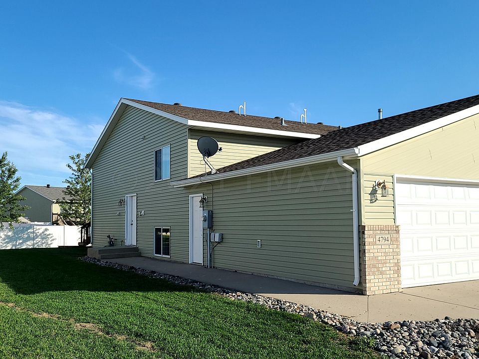 Classy J&L twin home in Osgood's South Forty addition. Open concept floor plan with vaulted ceilings, 3 bedrooms and 2 full bathrooms. Wood laminate flooring in kitchen and dining plus heated floors in both baths! Attached double garage, wood deck and washer/dryer included. Easy living in a great South Fargo location!
