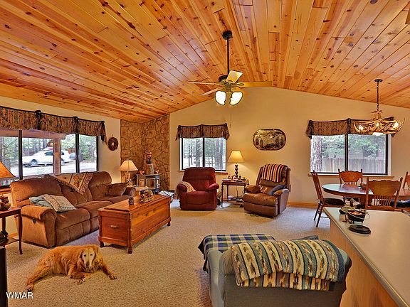 A very well maintained log-sided cabin on a heavily treed lot with easy year round access. Oversized and covered front and back decks to enjoy your time outside. Security screen doors make it so you can ''sleep with the doors open'' in the summertime. The Great Room has tongue & groove vaulted ceilings and lots of windows to bring the light in. Located in Pinetop Lakes Country Club, this is a great location to enjoy all the outdoor activities the White Mountains are known for.